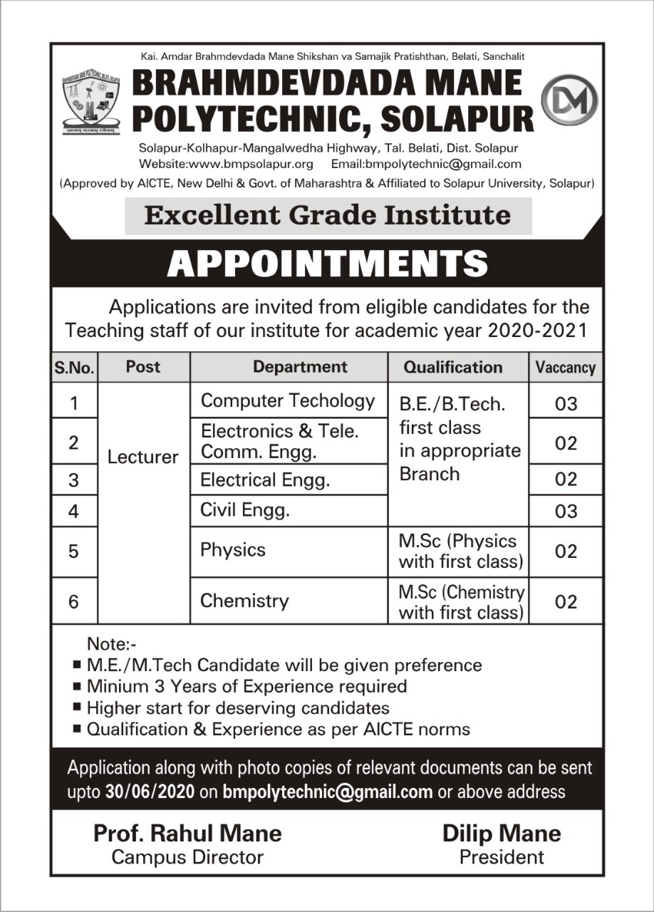 Brahmdevdada Mane Polytechnic Solapur
