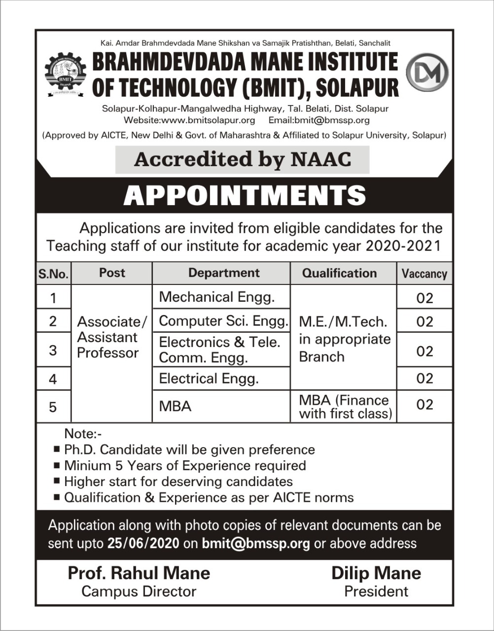 Brahmdevdada Mane Institute of Technology (BMIT), Solapur
